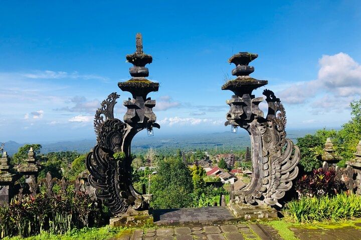 We will start the journey by visiting the Temesi Waterfall, which is located in a hidden place and in the middle of an unspoiled tropical forest. Then visit a beautiful and majestic temple that has Balinese style carvings which have a different entrance from other temples, then we will visit Goa Raja Waterfall, where this place is unique where the waterfall is between the riverside walls shaped like a cave, and there is silhouette in between the canyon of the river. And we will stop at a restaurant that has a stunning view of the valley and will be balanced with food that is so delicious, as if you feel you are in such a luxurious place, and finally we will visit the largest temple in Bali, the Besakih Temple. Where this temple is a temple complex that is at the time of the great mountain that will have such extraordinary beauty. From the top of this place we can see the green land of the island of Bali and the blue ocean.