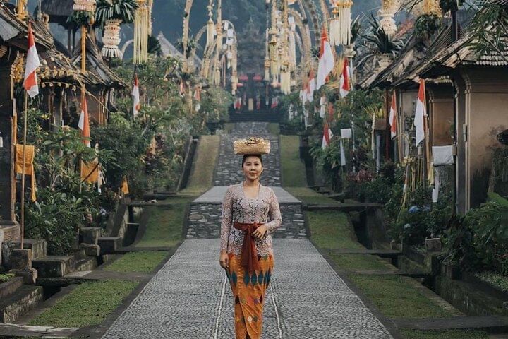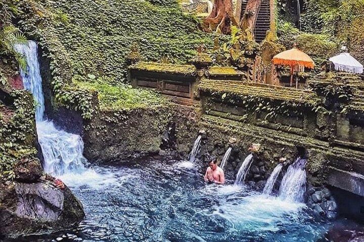 After being picked up from your hotel at 8:30 am, you will begin your journey to explore Balinese traditions and culture. First, you'll stop at Gianyar Market, the island's hidden treasure, where you'll enjoy the lively atmosphere while practicing your bartering skills and trying out local gastronomy. And than You will go to Temesi waterfall, where a beautiful waterfall is hidden in the tropical forest in the Gianyar area, a true gem waiting to be discovered deep in the forest. Learn more about Balinese culture in the traditional village of Penglipuran, where you'll have the chance to experience local customs before visiting the remote Bamboo Forest. And than we will visit the beautiful and magical Mengening Temple which has a holy spring which is always used for cleansing rituals by local people. Continue your journey to the Tegalalang area, a small village where you will enjoy stunning views of terraced rice fields.